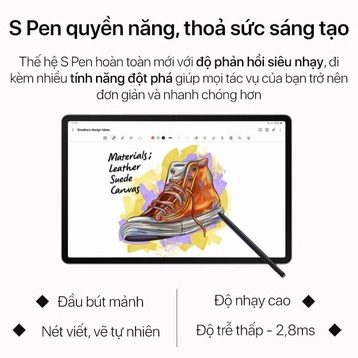 Cho dù bạn chọn kích thước máy tính bảng nào, S Pen mới đều đi kèm. Viết, phác thảo hoặc vẽ tất cả những ý tưởng ngông cuồng nhất của bạn thành hiện thực bằng S Pen với độ trễ cực thấp.